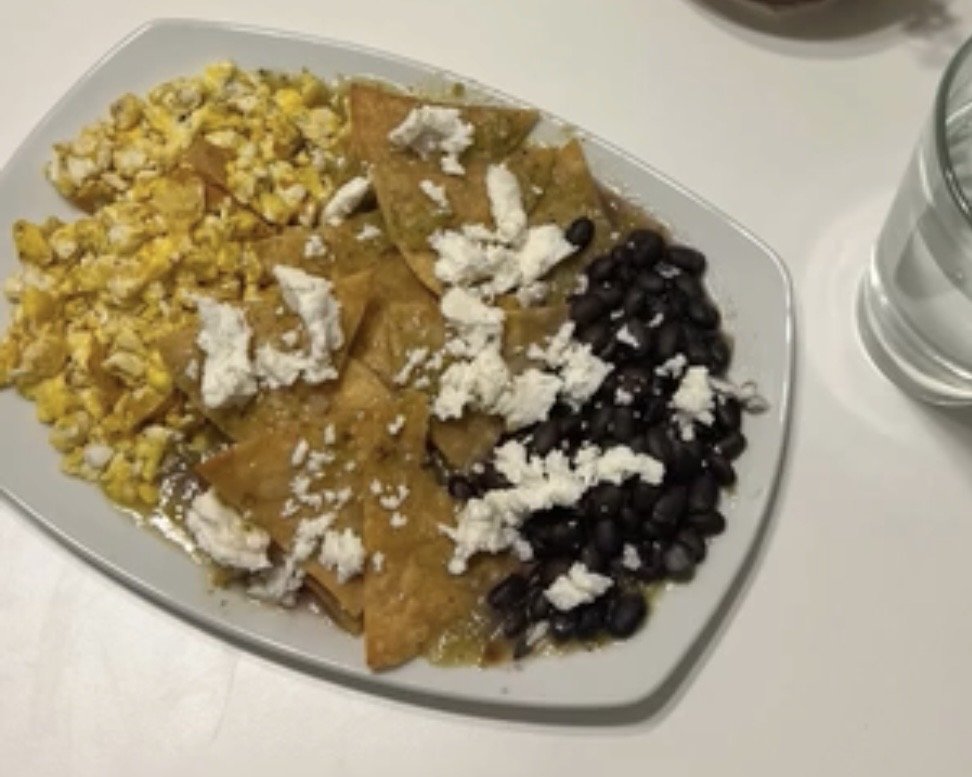 Serve: Serve with eggs, beans, and top with queso fresco and longaniza